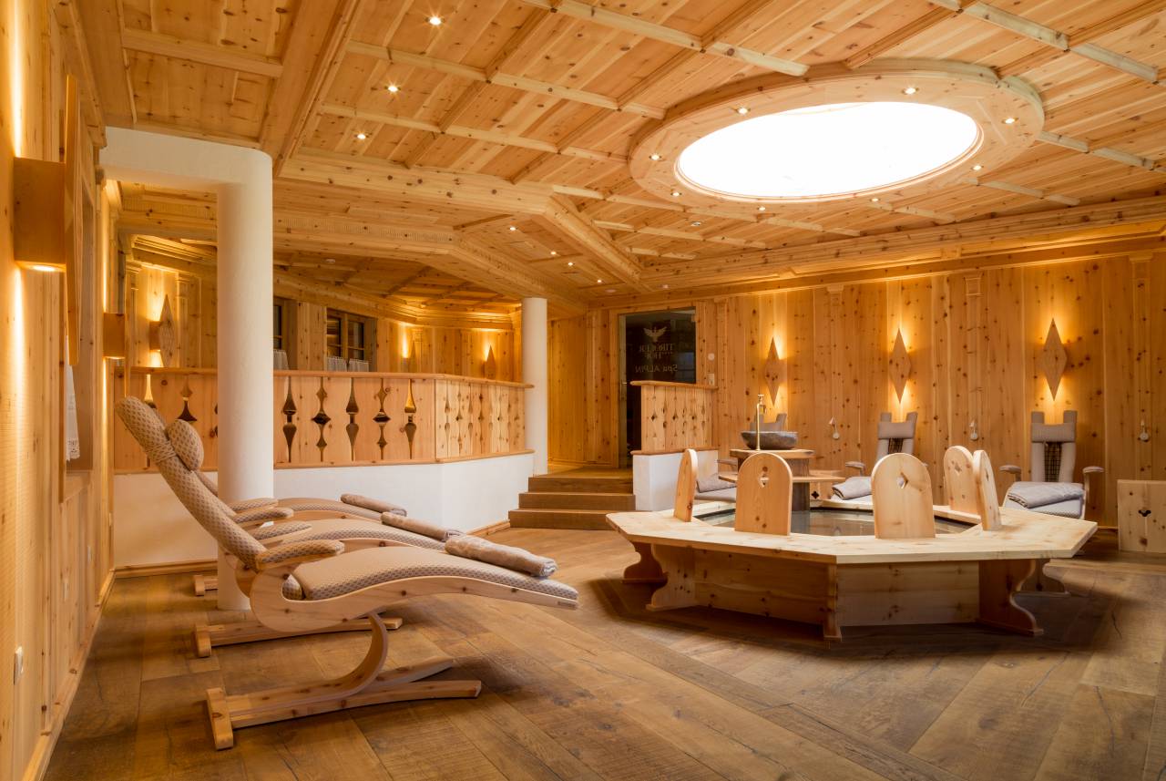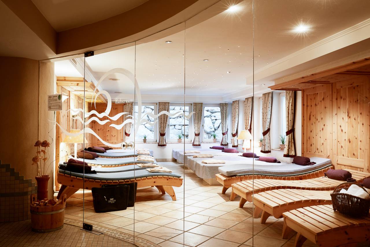 - Saunalandschaft mit Tepidarium (Steingrotte) 50°, Dampfbad 45°, Tiroler Schwitzstube 70°, Finnische Sauna 90°, Zirbenholz-Ruheraum mit Infrarot-Zirbenliegen, Kneippanlage, Frischluftgrotte, Spa Bar mit Wärmebank, Familientextil-Sauna im Hallenbad